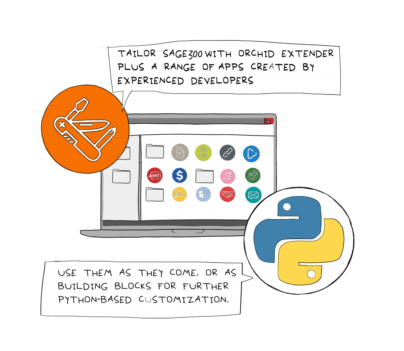 - Specifically designed for use with Orchid Extender by Python developers who customize Sage 300